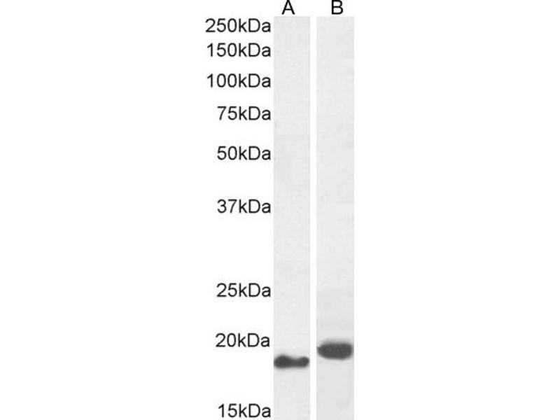 Western Blot: Approx. 18 kDa band observed in lysates of cell line A431 and approx. 20 kDa in nuclear lysates of cell line HeLa (calculated MW of 20.9 kDa according to NP_001658.2). Recommended concentration: 0.5-1 μg/mL.Primary incubation 1 hour at room tem