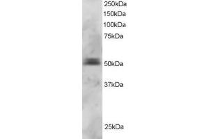Western Blot: Approx 38 kDa band observed in Human Lymph and Rat Spleen lysates, and approx.40 kDa in Mouse Spleen lysates (calculated MW of 42.1 kDa according to Human NP_057953.1 and 42.2 kDa according to Mouse NP_032808.1 and Rat NP_001102731.1). Recomme