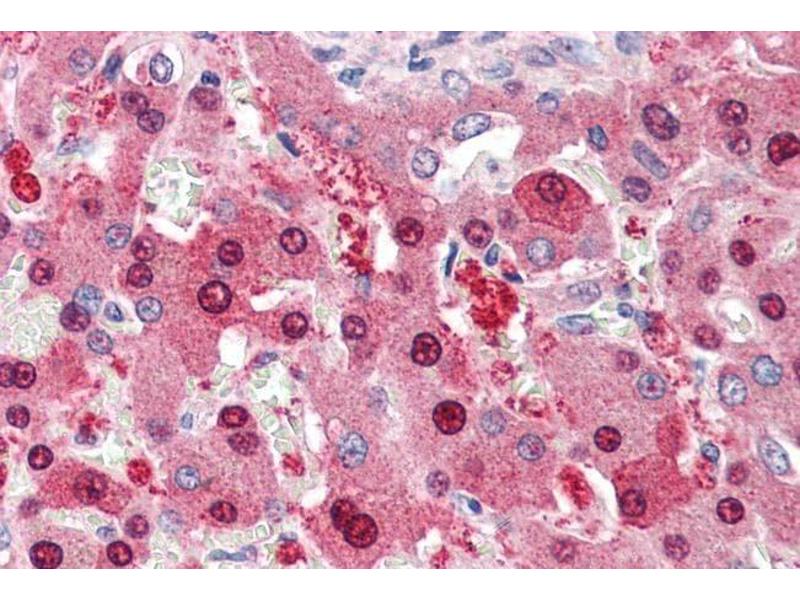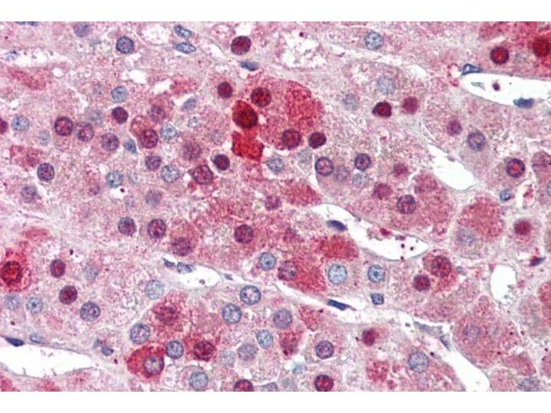 Immunohistochemistry: Paraffin embedded Human Liver and Adrenal Gland. Recommended concentration: 5 μg/mL.