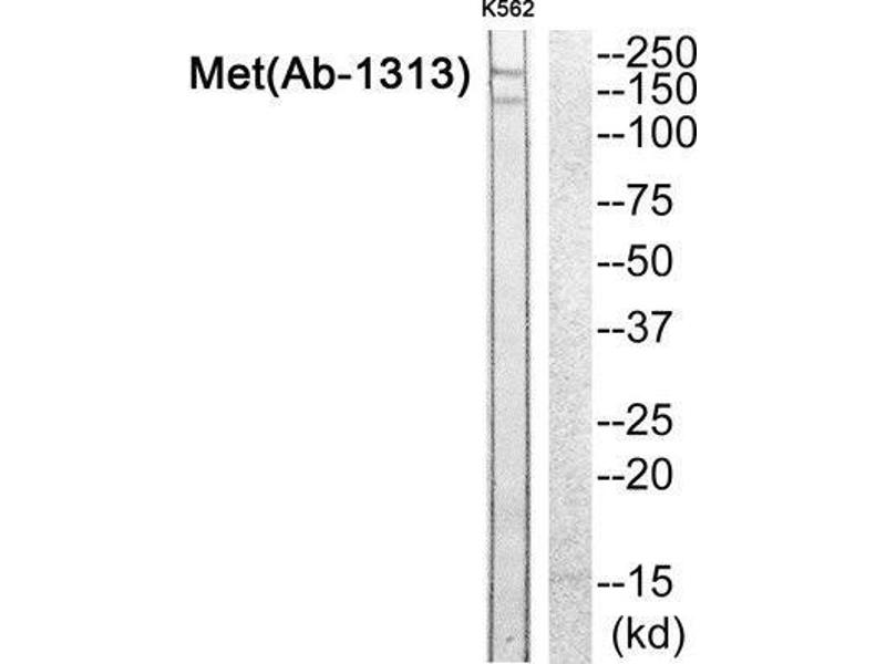 - The antiserum was produced against synthesized non-phosphopeptide derived from human Met around the phosphorylation site of residue 1313.