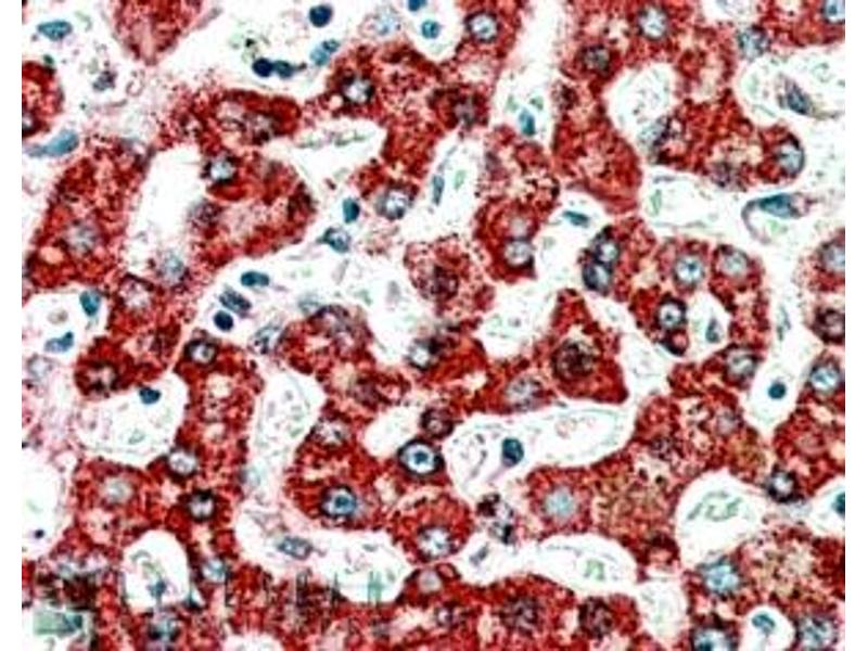 Immunohistochemistry: Paraffin embedded Human Liver and Adrenal Gland. Recommended concentration: 3.75 μg/mL.