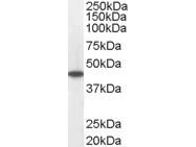 Western Blot: Approx 45 kDa band observed in Human Kidney and Heart lysates (calculated MW of 46.6 kDa according to NP_000007.1). Recommended for use at 0.01-0.1 μg/mL. Primary incubation was for 1 hour.