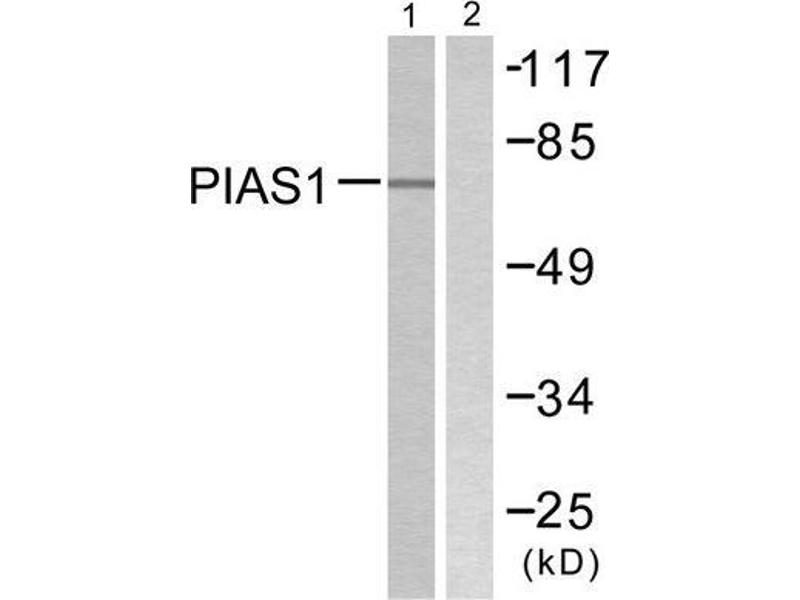 The antiserum was produced against synthesized peptide derived from N-terminal of human PIAS1.