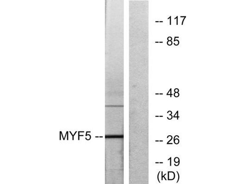 - The antiserum was produced against synthesized peptide derived from internal of human MYF5.
