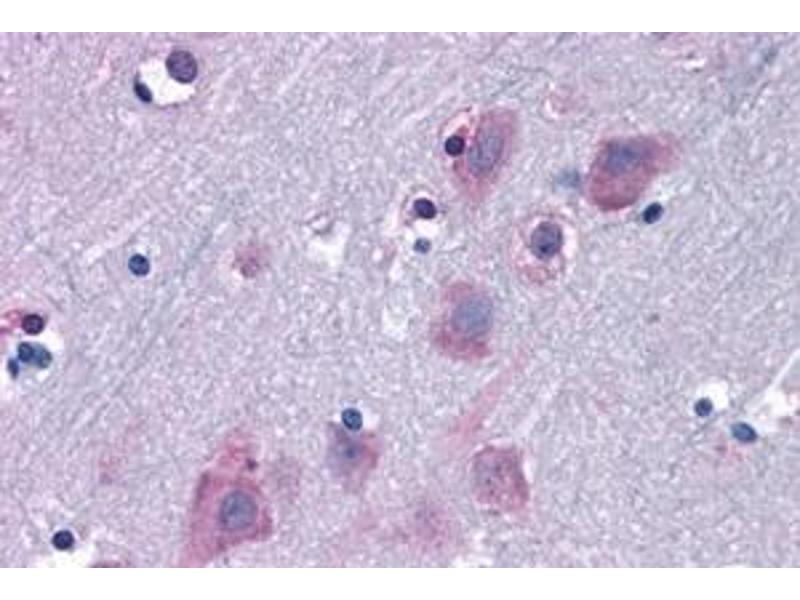 Immunohistochemistry: In paraffin embedded Human Brain (Cortex) shows cytoplasm stainning in neuronal cell bodies. Recommended concentration: 6-12 μg/mL.