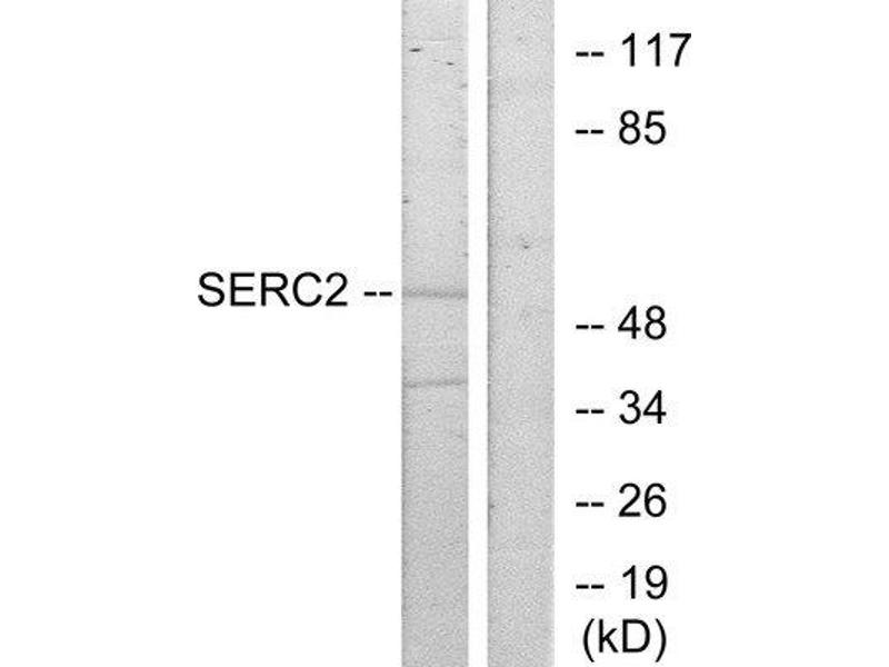 The antiserum was produced against synthesized peptide derived from C-terminal of human SERC2.