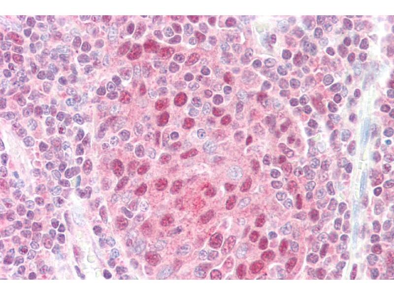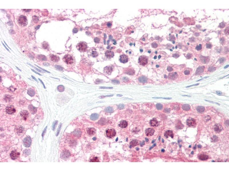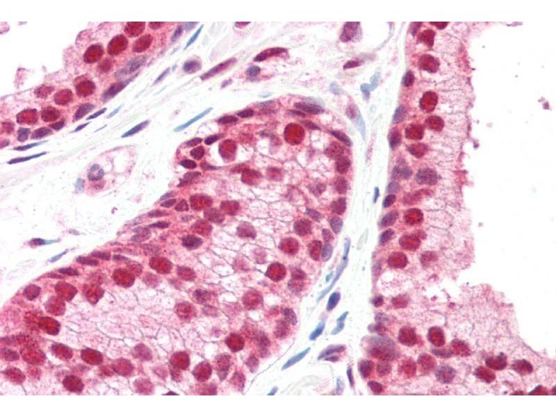Immunohistochemistry: Paraffin embedded Human Prostate, Testis and Tonsil. Recommended concentration: 5 μg/mL.