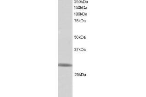 Western Blot: Approx 25-30 kDa band observed in Human Testis lysate (predicted MW of 26 kDa according to NP_057506). Recommended for use at 1 μg/mL.