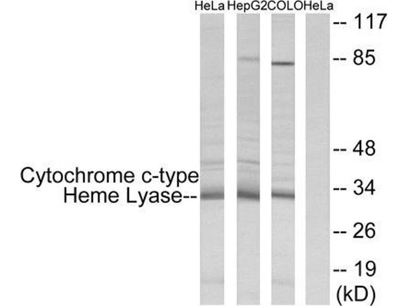 Rabbit polyclonal antibody against Cytochrome c-type Heme Lyase protein.