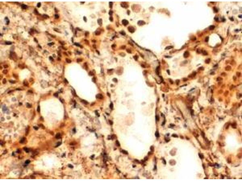 Immunohistochemistry: In paraffin embedded Human Thyroid Gland shows nuclear staining in thyrocytes. Recommended concentration: 2-4 μg/mL. Paraffin embedded Human Testis. Recommended concentration: 5 μg/mL.