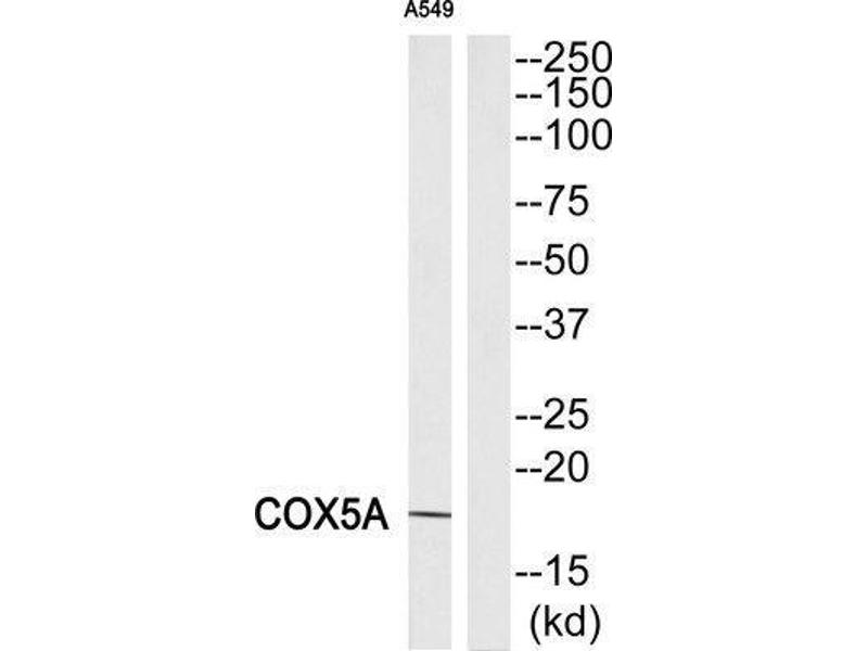 The antiserum was produced against synthesized peptide derived from Internal of human COX5A.