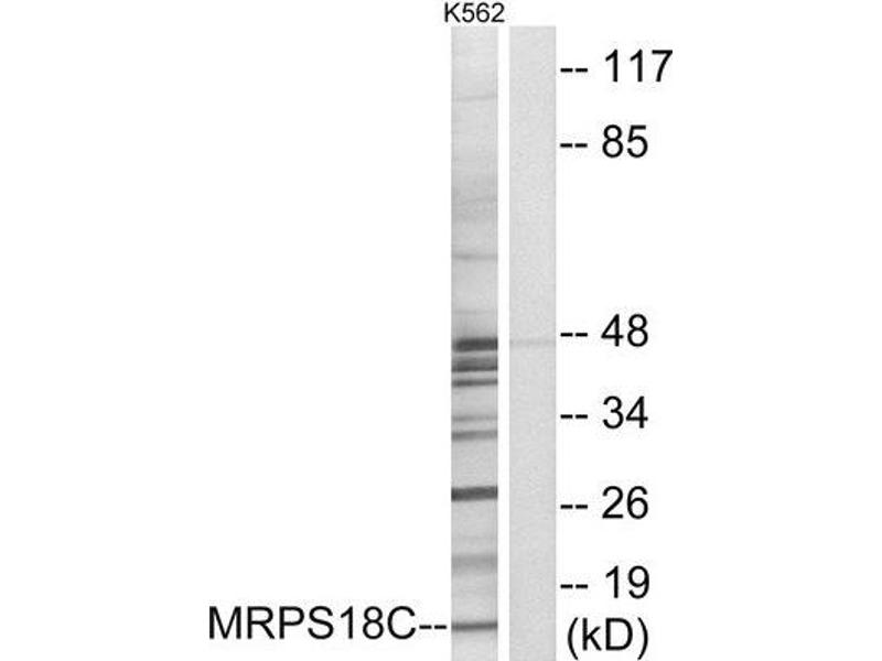 The antiserum was produced against synthesized peptide derived from internal of human MRPS18C.