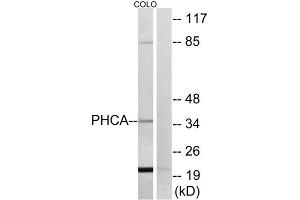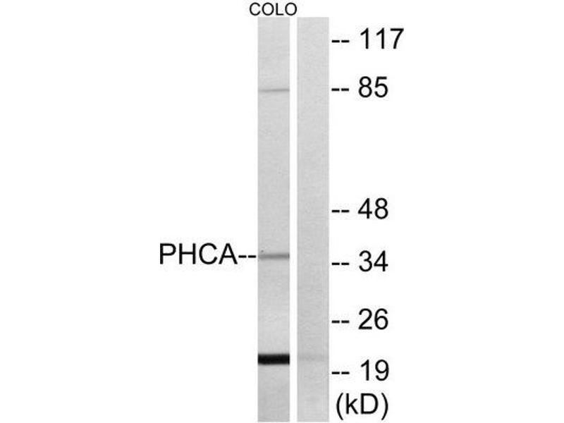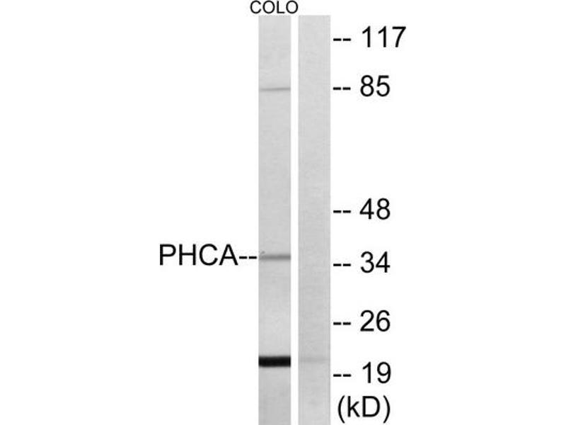 The antiserum was produced against synthesized peptide derived from internal of human PHCA.