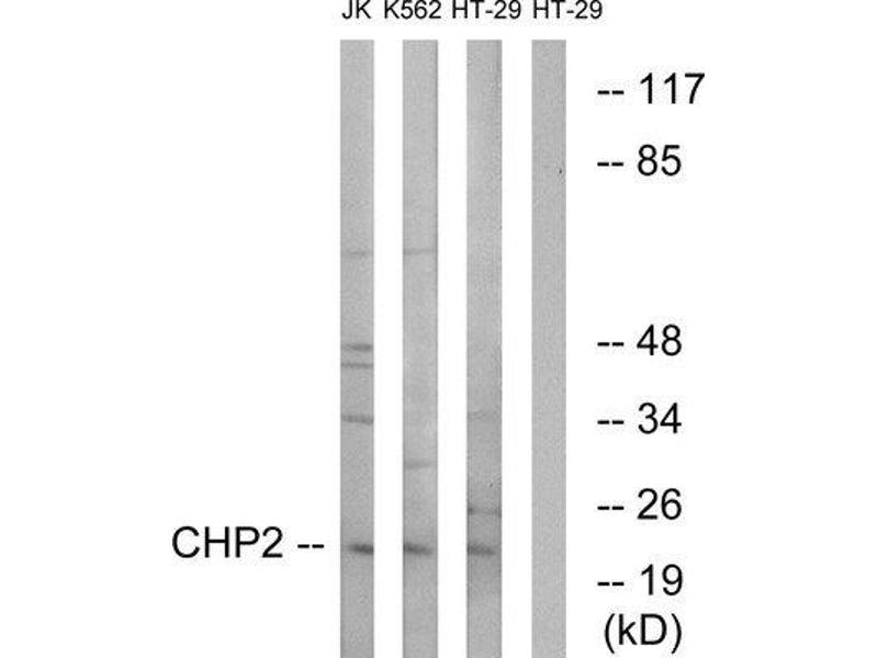 - The antiserum was produced against synthesized peptide derived from internal of human CHP2.