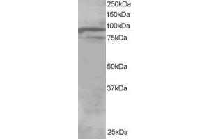 Western Blot: Approx 85-90 kDa band observed in Human Brain lysates (predicted MWs of 86 kDa according to NP_073613). A minor band of unknown identity was also consistently observed at 75 kDa. Recommended for use at 1-2 μg/mL.