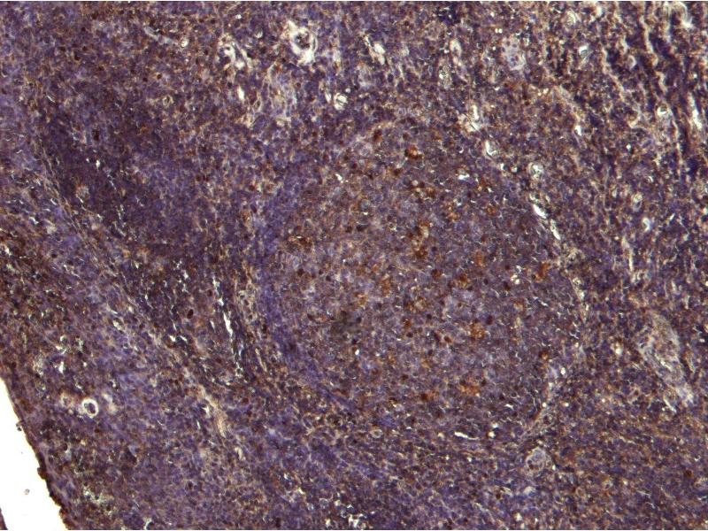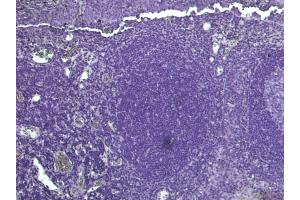 Immunohistochemistry: Paraffin embedded Human Tonsil. Recommended concentration: 6 μg/mL.