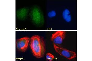 Immunofluorescence: Strong expression of the protein seen in the nuclei of U2OS cells. Recommended concentration: 10μg/ml.