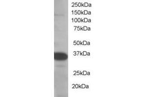 Western Blot: Preliminary testing showed a band at approx 19 kDa in lysate of cell line HeLa after 0.1 μg/mL antibody staining (calculated MW of 19.6 kDa according to NP_001230718.1),. Primary incubation 1 hour at room temperature.