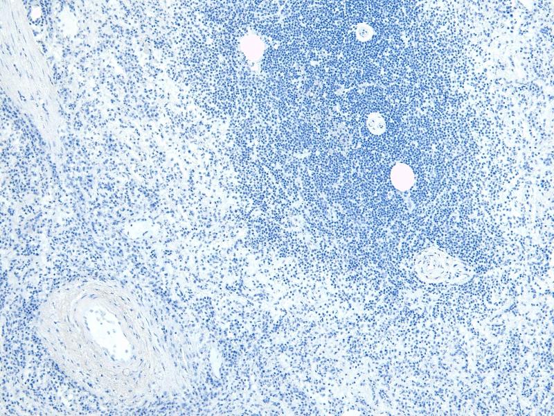Immunohistochemistry: Paraffin embedded Human Spleen. Recommended concentration: 6 μg/mL.