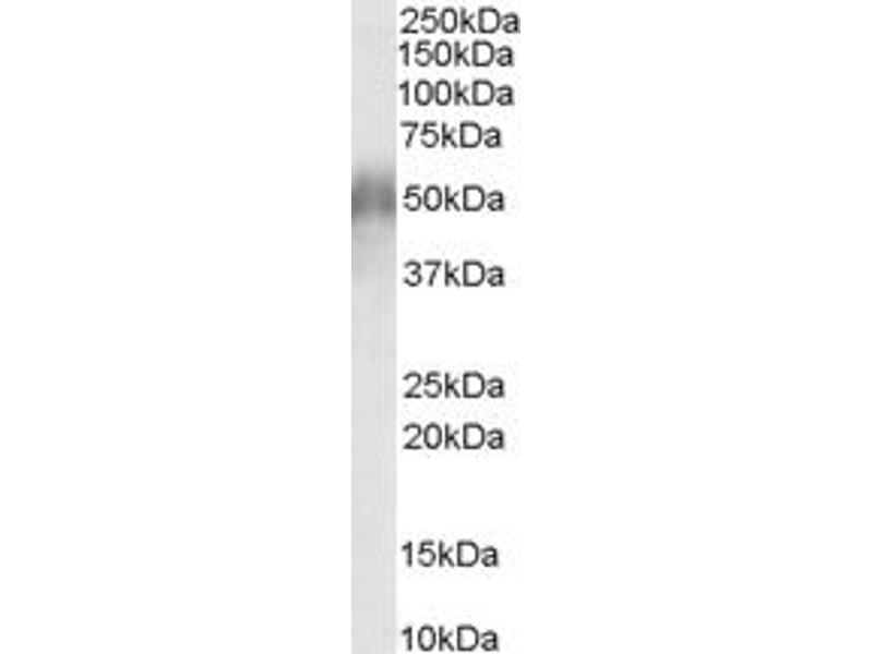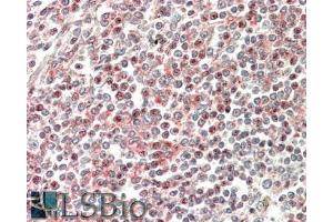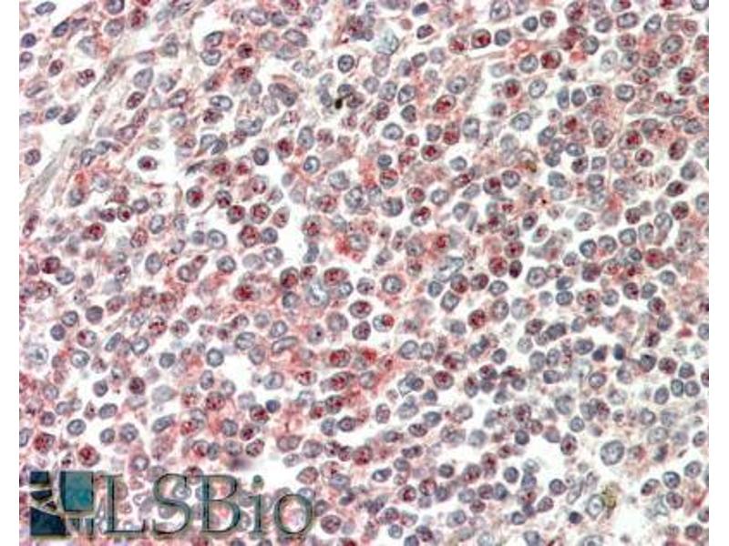 Western Blot: Approx 50 kDa band observed in Human Lymph Node, Thymus and Tonsil lysates (calculated MW of 37.6 kDa according to NP_006101.1). The observed molecular weight corresponds to earlier findings in literature with different antibodies (Nishizawa