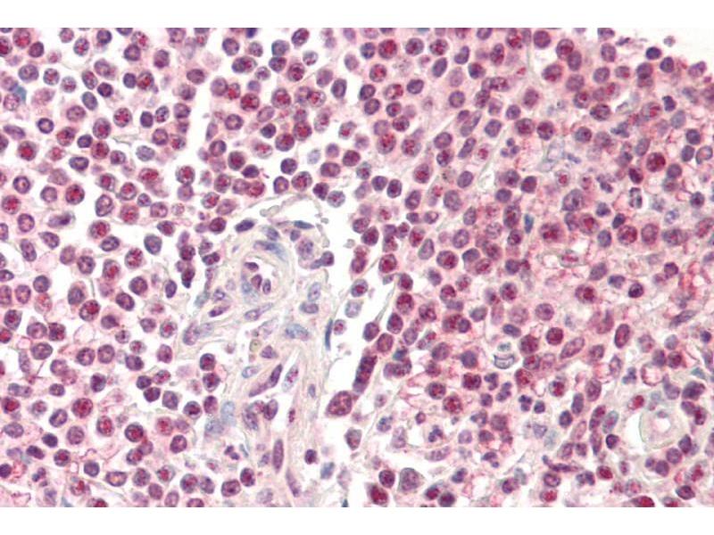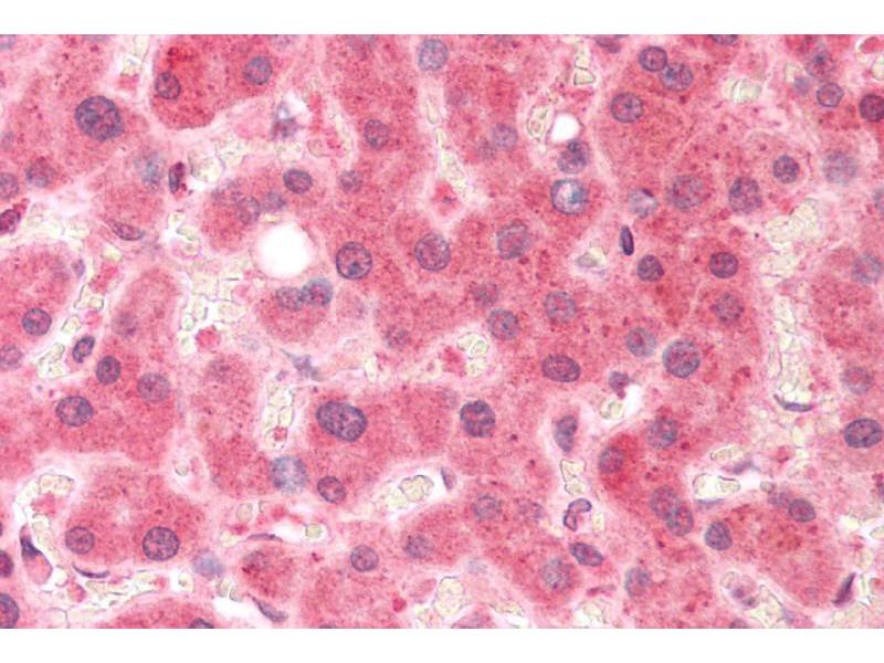Immunohistochemistry: Paraffin embedded Human Liver and Spleen. Recommended concentration: 5 μg/mL.