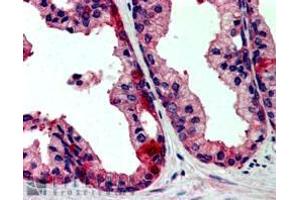 Immunohistochemistry: In paraffin embedded Human Prostate shows staining of cytoplasm of secretory cells in the glands. Recommended concentration, 2-3 μg/mL.