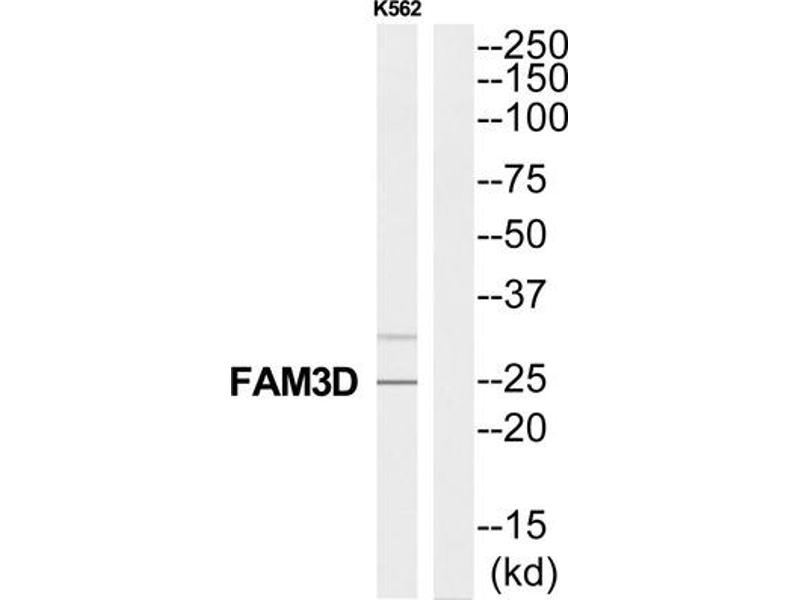 This Rabbit Polyclonal antibody specifically detects FAM3D in WB, ELISA and IHC. It exhibits reactivity toward Human.