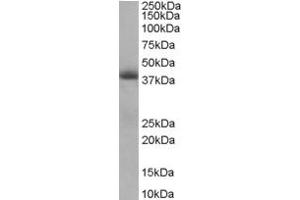 Western Blot: Approx 39 kDa in Human Heart lysate (Calculated MW of 50.5 kDa according to NP_001001563.1) . The observed molecular weight corresponds to earlier finding in literature with different antibodies (Guo et al, J Bio Chem 2004 Jun 4,279:24813-2