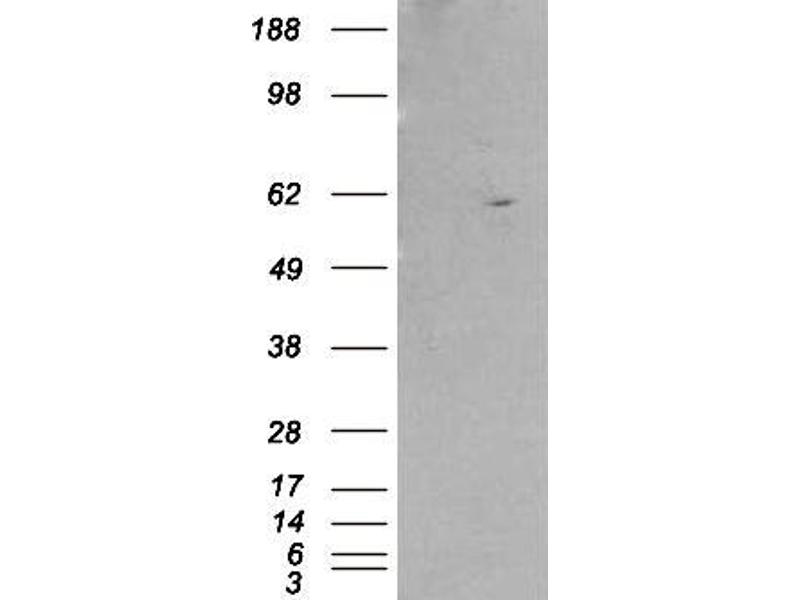 Western Blot: Approx 55 kDa band observed in lysates of cell line A431 (calculated MW of 56.9 kDa according to NP_068811.1). In transfected HEK293 transiently expressing RXRB a band of approx. 60 kDa is observed. This band is not observed in the non-transf