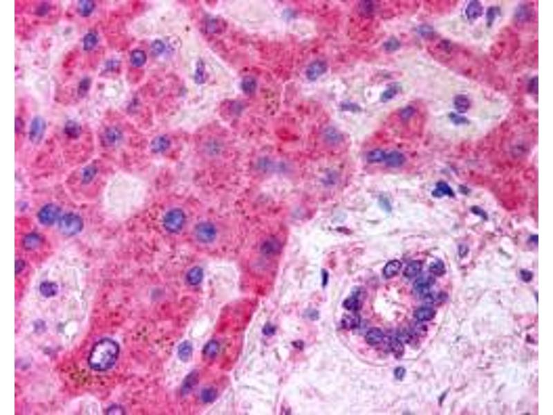 Immunohistochemistry: In paraffin embedded Human Kidney shows luminar membrane staining in DCT. Recommended concentration: 4-6 μg/mL.