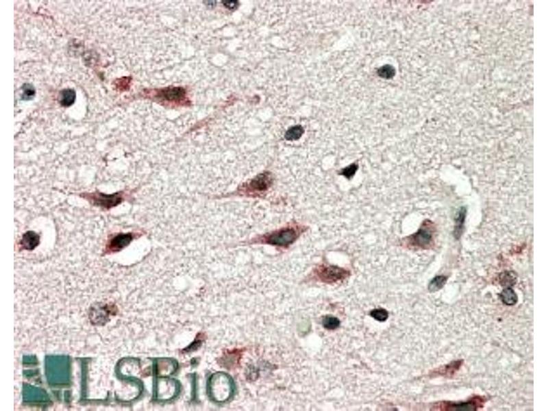 Immunohistochemistry: In paraffin embedded Human Cerebral Cortex shows cytoplasm staining in some of the neuronal cells. Recommended concentration, 5-10 μg/mL.