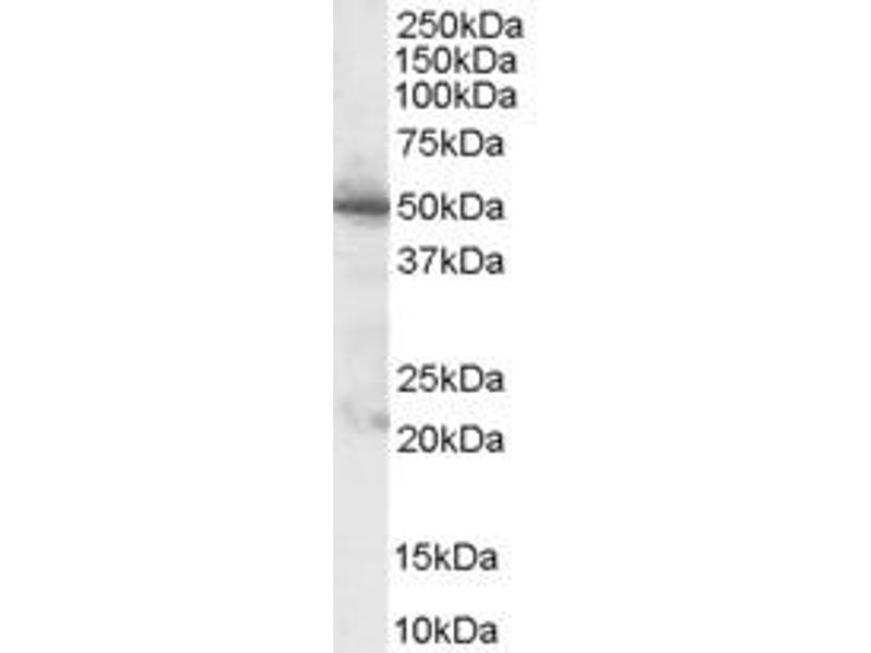 Western Blot: Approx 50 kDa band observed in Human Pancreas lysate (calculated MW of 54.2 kDa according to NP_003468.1). In transfected HEK293 transiently expressing PDHX a band of approx. 50 kDa is observed. This band is not observed in the non-transfecte