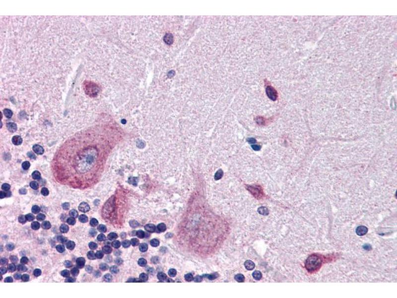 Immunohistochemistry: Paraffin embedded Human Brain (Cortex and Cerebellum). Recommended concentration: 3.75 μg/mL.