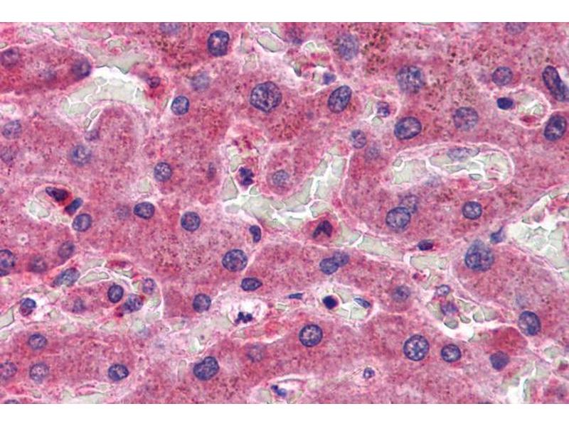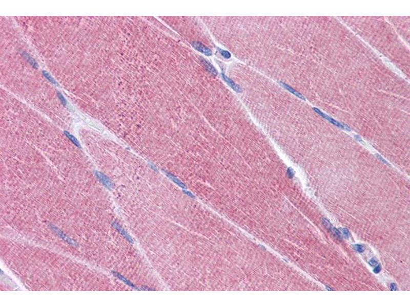 Immunohistochemistry: Paraffin embedded Human Skeletal Muscle and Liver. Recommended concentration: 3.75 μg/mL.