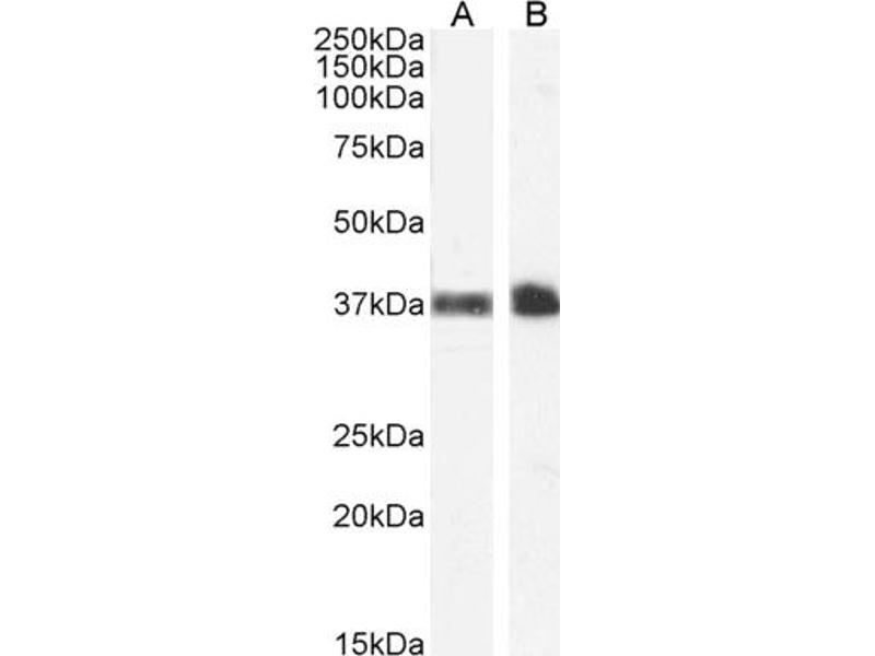 Western Blot: Approx 37-38 kDa band observed in Human Peripheral Blood Monocytes and Kidney lysates (calculated MW of 16.4 kDa according to NP_002090.2). The observed molecular weight corresponds to earlier findings with different antibodies from other com