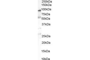Western Blot: Approx 90 kDa band observed in human duodenum and human testes lysates (calculated MW of 84.0 kDa according to NP_060254.2). Recommended concentration: 1-3 μg/mL.