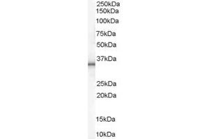 Western Blot: Approx 35 kDa band observed in Rat Adipose tissue and Skeletal Muscle lysates (calculated MW of 33.2 kDa according to Rat NP_036814.1). Recommended concentration: 0.5-1 μg/mL. . Primary incubation 1 hour at room temperature.