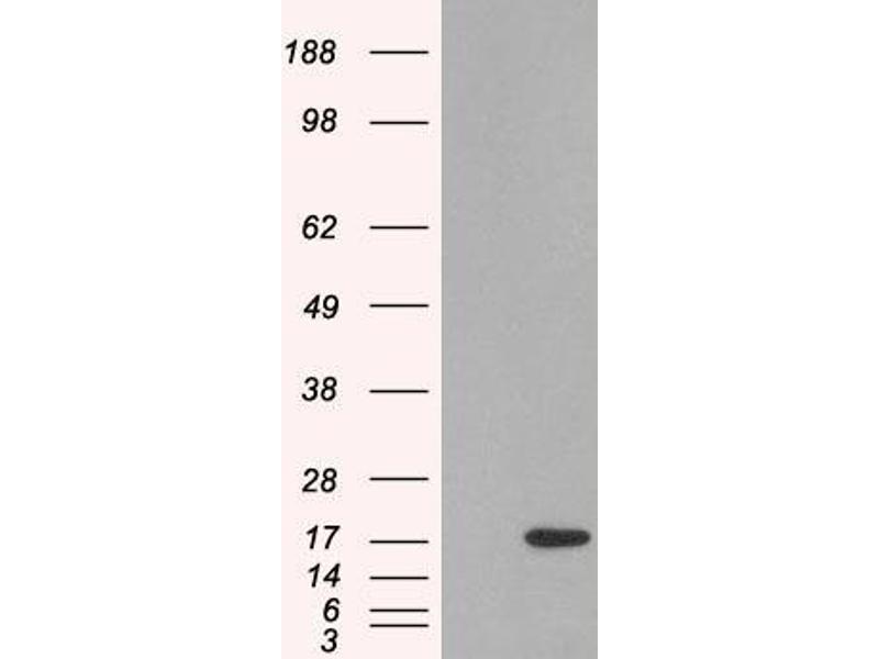Western Blot: Approx 16 kDa band observed in Human Lymph Node lysates (calculated MW of 14.2 kDa according to NP_002342.1). In transfected HEK293 transiently expressing SH2D1A a band of approx. 17 kDa is observed. This band is not observed in the non-transf
