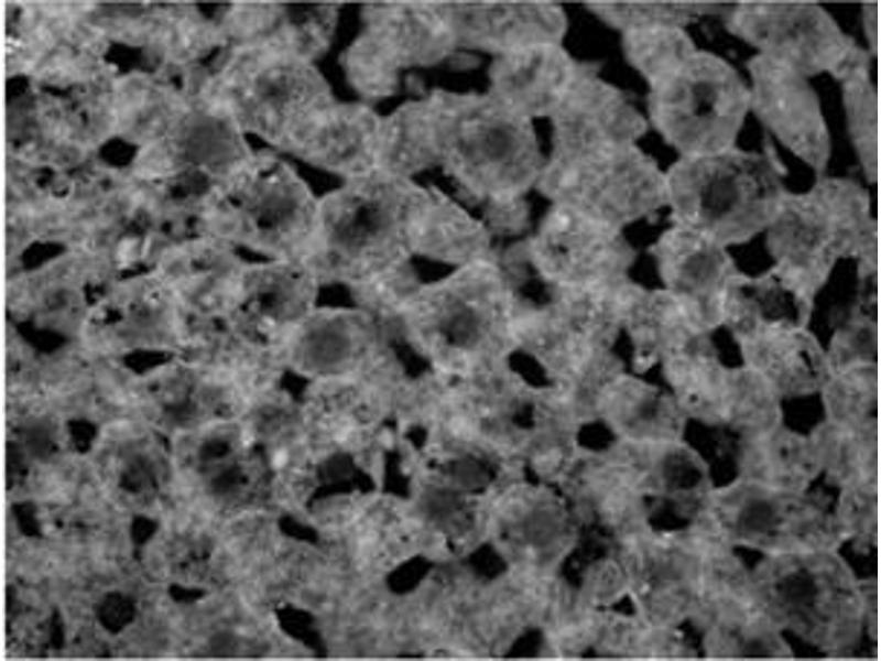 Immunohistochemistry: In paraffin embedded Human Liver shows textured cytoplasm staining in hepatocytes. Recommended concentration: 2 μg/mL.