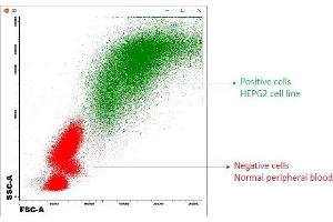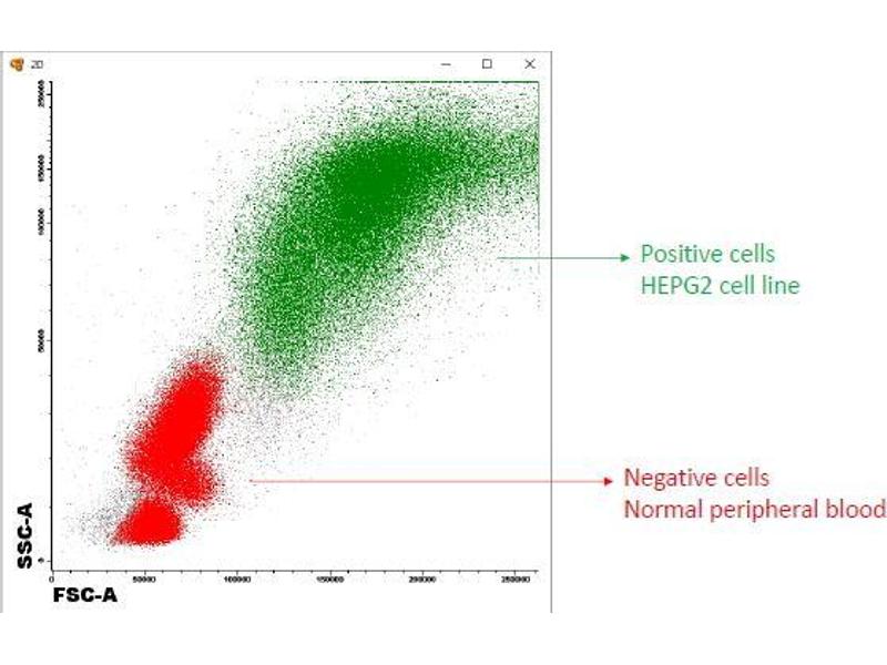 Flow Cytometry: Exclusively staining of HepG2 when mixed with Peripheral Blood Lymphocytes.