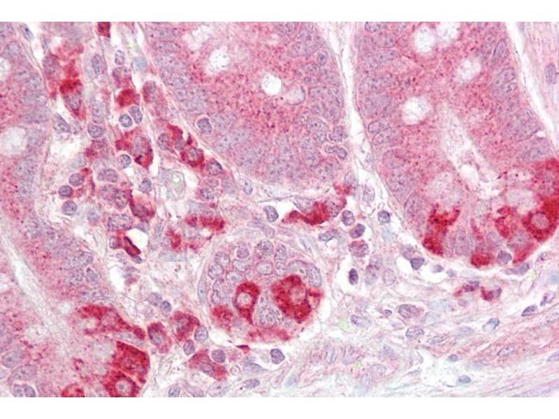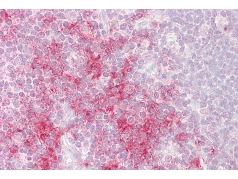 Immunohistochemistry: Paraffin embedded Human Thymus and Small Intestine. Recommended concentration: 2.5 μg/mL.