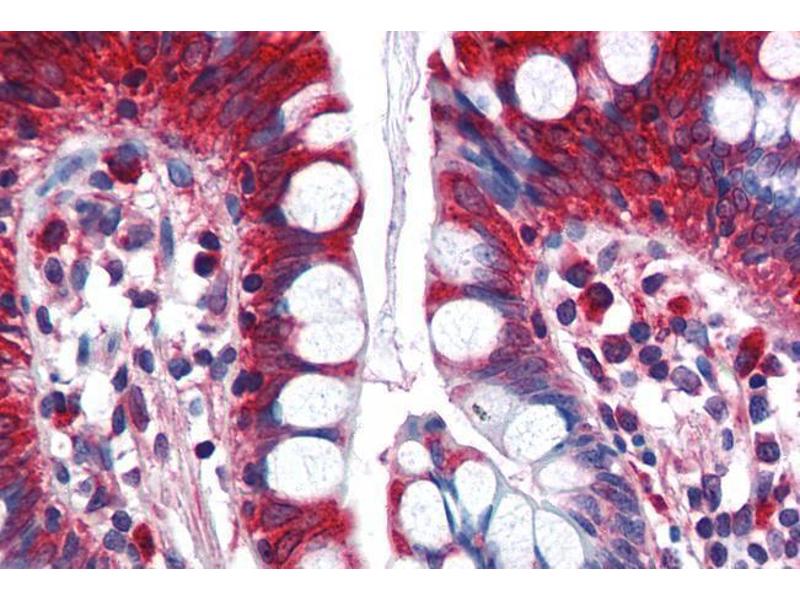 Immunohistochemistry: Paraffin embedded Human Small Intestine. Recommended concentration: 5 μg/mL.