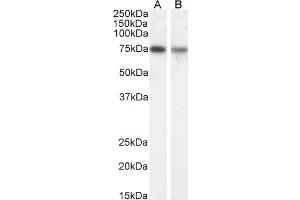 Western Blot: Approx 75 kDa band observed in Mouse and Rat Brain lysates (calculated MW of 72.3 kDa according to Mouse NP_034021.1 and Rat NP_001164064.1). Recommended concentration:0.3-1 μg/mL. Primary incubation 1 hour at room temperature.