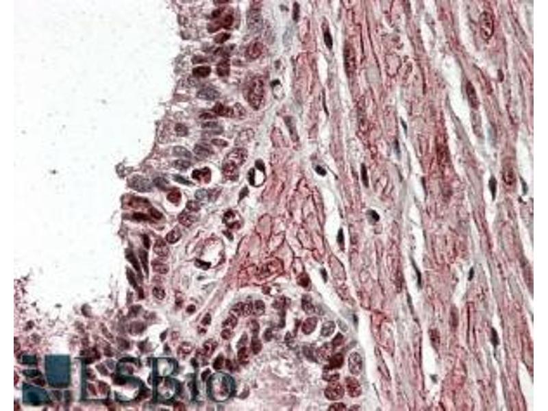 Immunohistochemistry: In paraffin embedded Human Prostate shows nuclear staning in select secretory cells. Recommended concentration: 3-6 μg/mL.