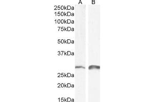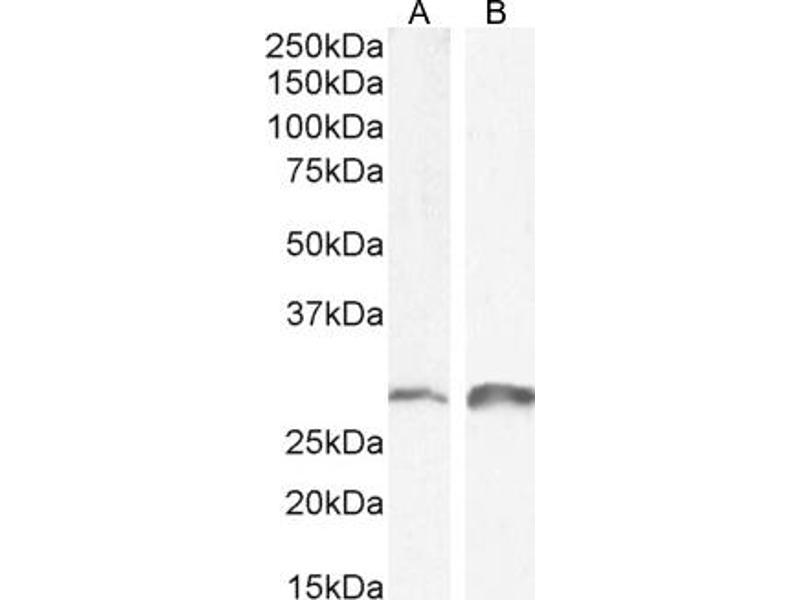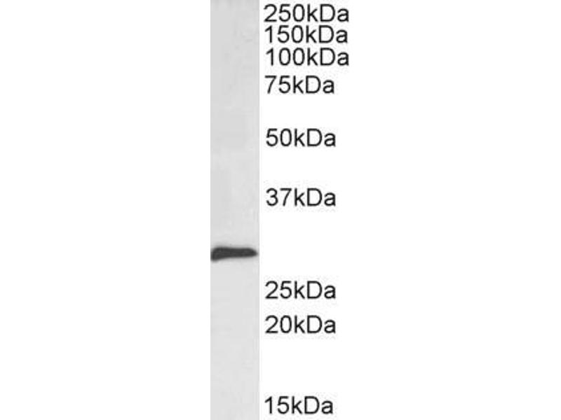 Western Blot: Approx 28 kDa band observed in Mouse and Rat Kidney lysates (calculated MW of 29.1 kDa according to Mouse NP_035557.1 and Rat NP_446257.1). Recommended concentration: 0.1-1 μg/mL. Primary incubation 1 hour at room temperature.