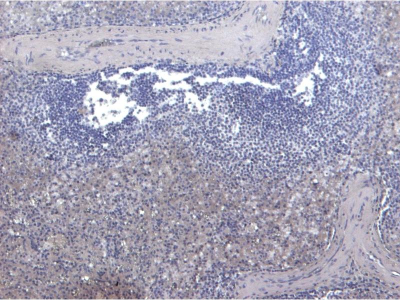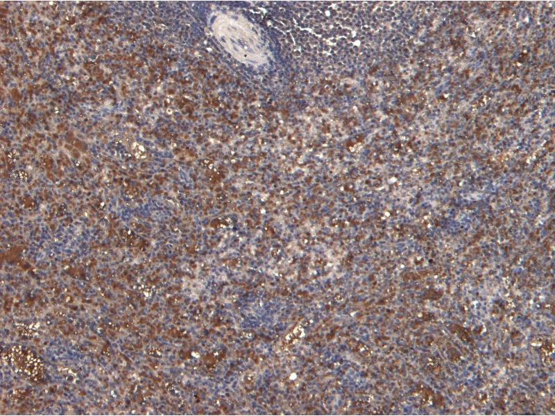 Immunohistochemistry: Paraffin embedded Human Spleen. Recommended concentration: 6-8 μg/mL.