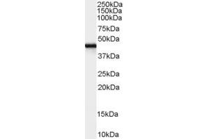 Western Blot: Approx 75 kDa band observed in lysates of cell line Kelly, ans in Rat Brain lysates (calculated MW of 45.1 kDa according to human NP_005094.1 and 45.2 kDa according to Rat NP_112328.1). This molecular weight is routinely observed by other sour