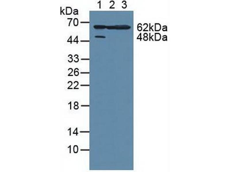 - Western blotting: 0.01-2 μg/mL,Immunohistochemistry: 5-20 μg/mL,Immunocytochemistry: 5-20 μg/mL,Optimal working dilutions must be determined by end user.