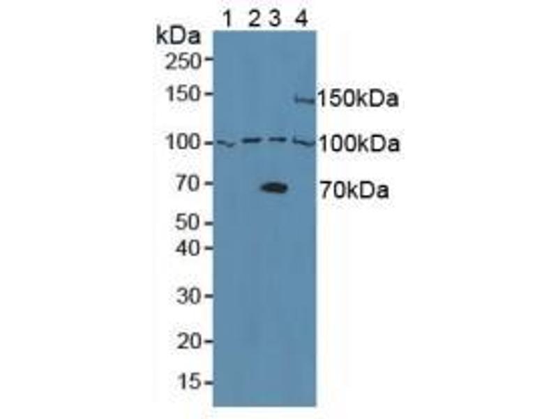 ABIN1866534 reveals protein bands and 90 kDa and 110 kDa specifically in the Adam8 wildtype lysates. They are not present in the Adam8 ko lysates. And additional unspecific band between these two bands in visible in all lysates.