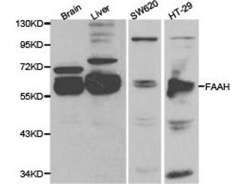 The Rabbit Polyclonal anti-FAAH antibody has been validated for WB, IHC and IF. It is suitable to detect FAAH in samples from Human, Mouse and Rat.